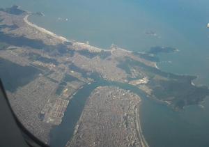 Panorama aéreo de trecho da Baixada Santista